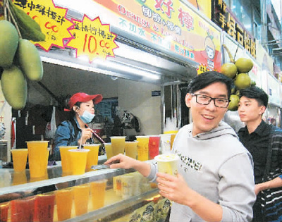 來(lái)自海峽兩岸的媒體記者12月18日起在海南省展開(kāi)“一帶一路”、瓊臺(tái)合作專(zhuān)題采訪(fǎng)。記者18日在臺(tái)商經(jīng)營(yíng)的?谔埑黔偱_(tái)小吃街采訪(fǎng)在此創(chuàng)業(yè)的臺(tái)灣青年。家在臺(tái)北的廖信翰留學(xué)畢業(yè)后落戶(hù)?,用臺(tái)灣夜市的模式將自己的4個(gè)攤檔經(jīng)營(yíng)得生意紅火。圖為廖信翰正在招呼客人。