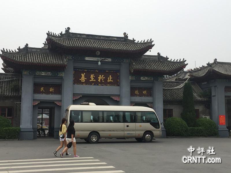 河南大學(xué)的牌坊,非常有歷史風(fēng)格。正面書“河南大學(xué)”,背面書“止于至善”。(中評社 徐夢溪攝)