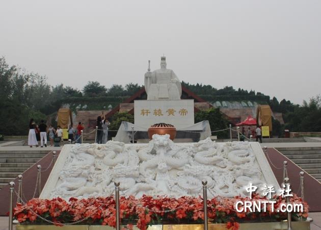9月10日下午,中評社采訪組來到河南新鄭,這里是人文初祖黃帝故里。進入中華姓氏廣場前,工作人員為采訪組每人披上一條黃色絲巾。這時,采訪組的身份不只是游客、記者,還是前來敬拜始祖的子孫。