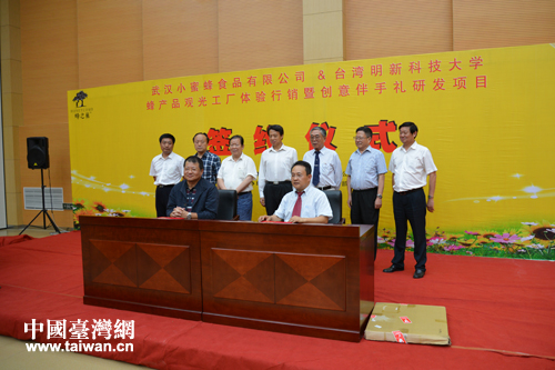 中國臺灣網6月20日武漢消息 6月18日下午,武漢小蜜蜂食品有限公司和臺灣明新科技大學在武漢市江夏區簽約“蜂產品觀光工廠體驗行銷暨創意伴手禮”項目。