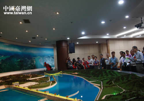 兩岸新媒體采訪團參觀三峽工程展覽館,了解三峽工程建設模型和運行情況。(中國臺灣網 段雯婷 攝)