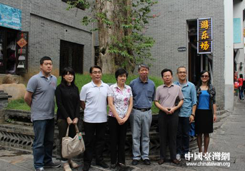 張孝威一行在岳陽風景區千年古樹下合影留念。(圖片來源:岳陽市臺辦)