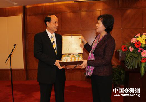 黃蘭香與林中森互贈(zèng)紀(jì)念品。(圖片來(lái)源:岳陽(yáng)市臺(tái)辦)