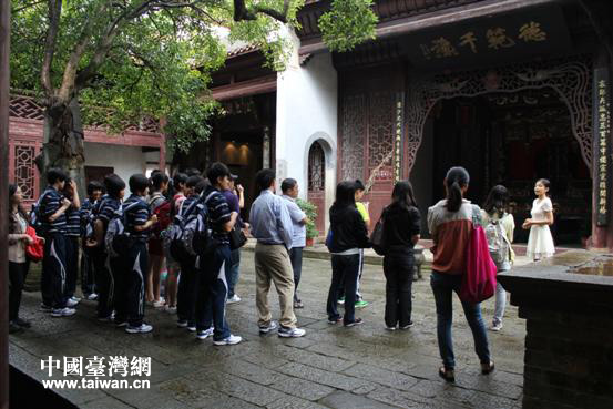 臺灣青少年學(xué)生在屈子祠里探尋屈原文化。(圖片來源:岳陽市臺辦)