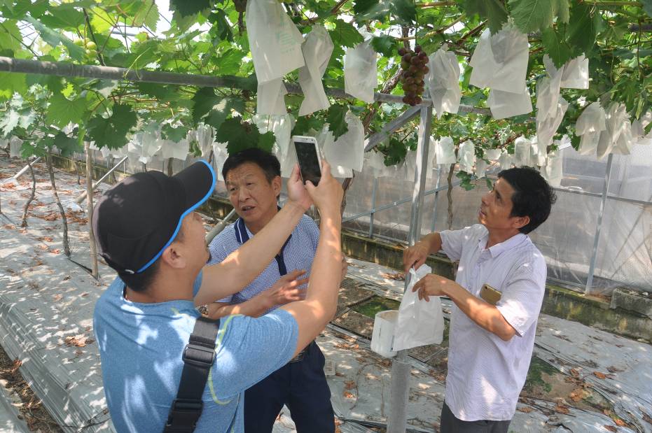 臺(tái)商考察團(tuán)來到澧縣葡萄產(chǎn)業(yè)園現(xiàn)場(chǎng)考察施用有機(jī)肥的葡萄作物