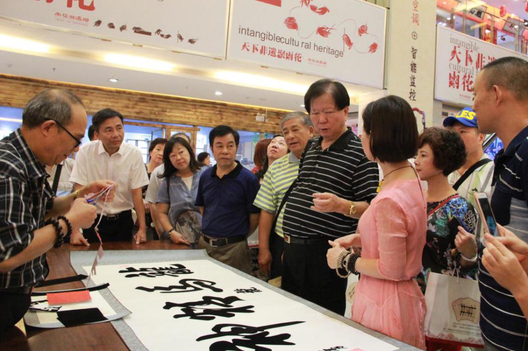 代表團一進非遺館,馬上為“茶道”和“香道”所吸引,紛紛上前“聞香品茗”;當來到湘西文化一條街,參觀團中的大多數(shù)女性企業(yè)家都被精美的藍印花布制品所吸引,尤其聽說藍印花布的染料是由板藍根、黃豆等天然作物制成的,更增加了對這圖騰好看、成品精美的布料的興趣;“中華第一剪”洪源老師現(xiàn)場展示背手剪字讓代表團直呼“不可思議”;而在玉疊妃菊花石館,大家觀賞著數(shù)億年前形成的天然菊花石,歷史文化和現(xiàn)代科技碰撞出的奇妙火花讓臺灣參觀團嘆為觀止;寶慶瓷刻、湖南湘繡研究所、芒果大叔木工坊等各場館,無不留下代表團深深地贊嘆,大家紛紛感嘆湖湘大地深厚的歷史文化底蘊,同時也被匠人精神所感染折服。
