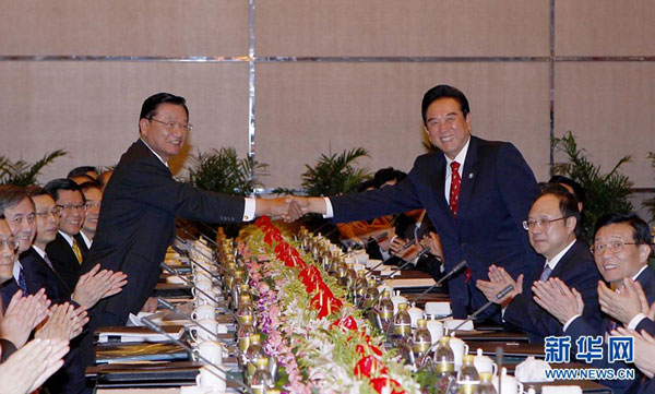 2010年6月29日上午9時(shí),兩岸兩會(huì)領(lǐng)導(dǎo)人第五次會(huì)談在重慶舉行,海協(xié)會(huì)會(huì)長(zhǎng)陳云林和海基會(huì)董事長(zhǎng)江丙坤在會(huì)談中將就簽署兩岸經(jīng)濟(jì)合作框架協(xié)議及兩會(huì)后續(xù)商談議題等交換意見。這是陳云林(右)和江丙坤(左)在會(huì)談前握手。新華社記者陳建力攝(資料圖)