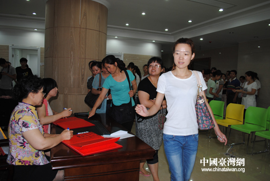 寶島員工踴躍登記捐款(北京市臺辦 郭寧 攝)