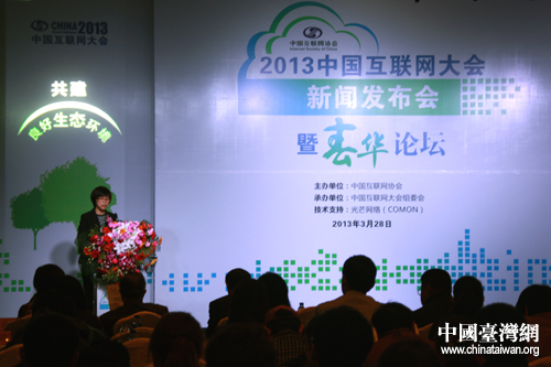 28日下午,2013中國互聯(lián)網(wǎng)大會新聞發(fā)布會暨春華論壇在京召開。(中國臺灣網(wǎng) 王偉 攝)