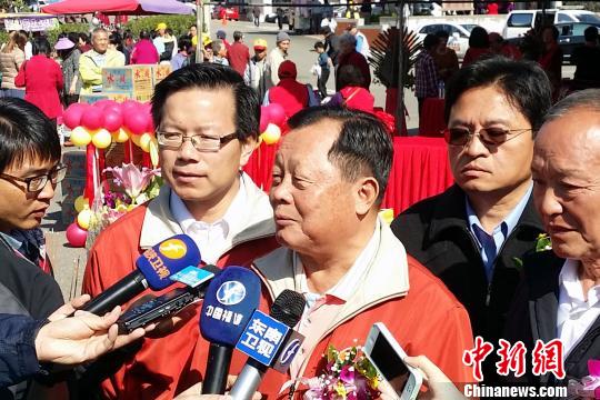 12月6日,臺灣第1艘原裝全太陽能發電游艇在風光明媚的苗栗縣明德水庫首航。圖為苗栗縣劉政鴻接受大陸媒體采訪!∮^光業者提供 攝