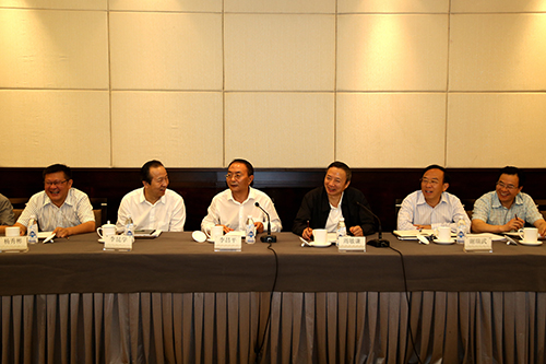 四川省委常委、省委農工委主任李昌平(左三)等領導出席座談會與臺商交流。