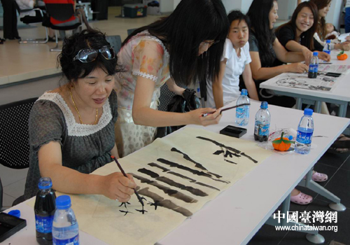 遼臺兩地婚姻家庭在學習畫竹子(圖片來源:遼寧省臺辦)