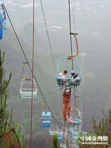 中國(guó)臺(tái)灣網(wǎng)6月1日桂林消息 5月26日,廣西桂林,大雨低溫。當(dāng)天上午,桂林堯山觀光纜車因機(jī)械故障停止運(yùn)行,78名游客被困1400米段長(zhǎng)的高空纜車,其中有22名臺(tái)灣游客。