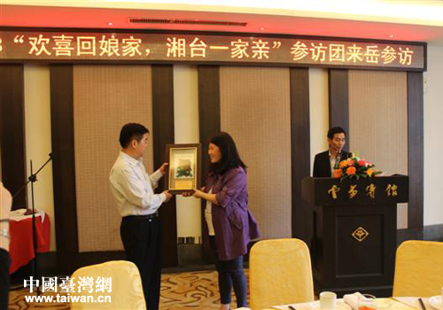 中國(guó)臺(tái)灣網(wǎng)10月21日岳陽(yáng)消息 10月15日至20日,由湖南省委臺(tái)灣工作辦公室主辦、岳陽(yáng)市委臺(tái)灣工作辦公室承辦、臺(tái)灣湖南文獻(xiàn)社協(xié)辦的2013“歡喜回娘家、湘臺(tái)一家親”岳陽(yáng)行參訪活動(dòng)在岳陽(yáng)舉行。由臺(tái)灣湖南文獻(xiàn)社社長(zhǎng)、岳陽(yáng)籍“大陸新娘”黃國(guó)暉女士率領(lǐng)的40名在臺(tái)陸配歡聚岳陽(yáng),共敘鄉(xiāng)情友情。