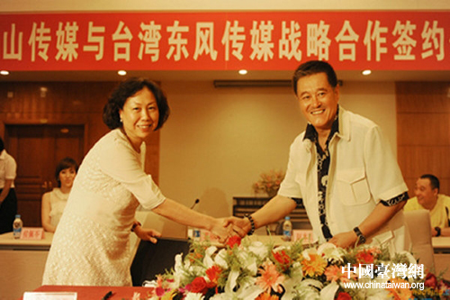 7月25日,臺灣東風(fēng)衛(wèi)視掌門人、“臺灣綜藝之母”葛福鴻率隊到沈陽大舞臺,與本山傳媒正式簽約,兩岸兩大傳媒,未來將展開多項深度密切的合作。趙本山與葛福鴻在簽約儀式上表達了對未來成功合作的期待,與葛福鴻一同前來的臺灣著名主持人吳宗憲、侯佩岑;趙本山的得意門生小沈陽、張小飛出席簽約儀式。趙本山更是當(dāng)眾表態(tài),“我就想把大舞臺開到臺灣去。”。