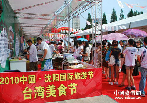 中國臺灣網7月28日沈陽消息 日前,由沈陽市旅游局主辦、和平區政府承辦的“2010年沈陽國際旅游節——臺灣美食節”在遼寧省沈陽市圓滿閉幕。來自臺灣200多個品種的小吃、食品、土特產品和酒品首次登陸沈陽,讓沈陽市民大飽口福。
