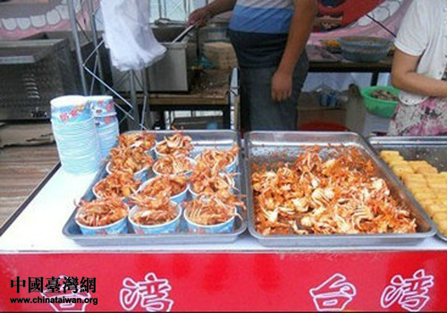 中國臺灣網7月4日沈陽消息 日前,臺灣小吃蚵仔煎、芙蓉蝦、甜不辣、大腸包小腸等臺灣特色美食空降沈陽,在著名的沈陽中街步行街迎來了臺灣美食節。