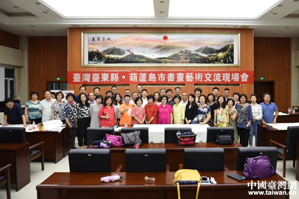 2018年8月14日,遼寧省葫蘆島市臺辦、市文聯、市臺聯、市民革聯合舉辦了“臺灣臺東縣·葫蘆島市書畫藝術交流現場會”。(中國臺灣網遼寧臺辦通訊員 周大偉)