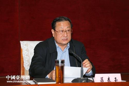山西省委常委、秘書長聶春玉出席會議并講話。(圖片來源:山西省臺辦)