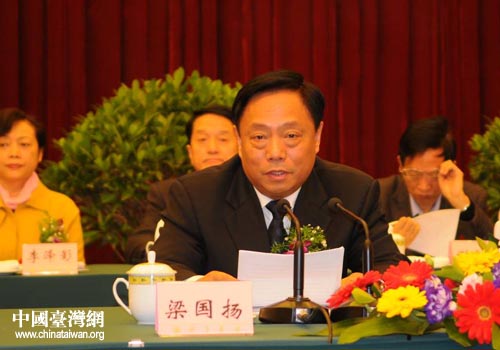 全國人大常委、全國臺聯會長梁國揚致辭。(圖片來源:四川省臺辦)
