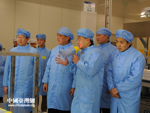 劉俊杰一行考察長智光電(四川)有限公司生產(chǎn)線。(圖片來源:四川省臺辦)