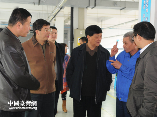 中國臺灣網(wǎng)12月9日德陽消息 12月7至8日,四川省委臺辦主任劉俊杰一行到德陽市、綿陽市調(diào)研。考察了什邡大愛感恩環(huán)保科技有限公司,綿陽長智光電、連康電子、利慶科技等臺資企業(yè),看望了臺商和臺灣慈濟基金會志工,與德陽市、綿陽市臺資企業(yè)協(xié)會進行了座談交流。并與德陽市委書記李向志、市委副書記丁成明,綿陽市委副書記張錦明分別就德陽、綿陽對臺工作情況交換了意見。