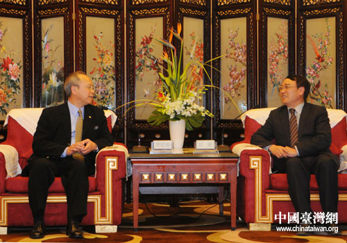 四川省副省長劉捷(右)會見臺灣“中信金控”經(jīng)營決策委員會主席羅聯(lián)福。(圖片來源:四川省臺辦)