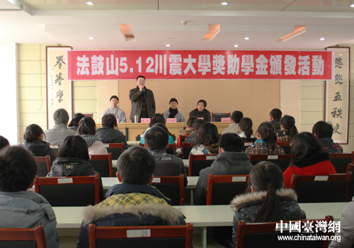 臺灣法鼓山慈善基金會“5.12”川震大學獎助學金頒發活動。(圖片來源:綿陽市臺辦)