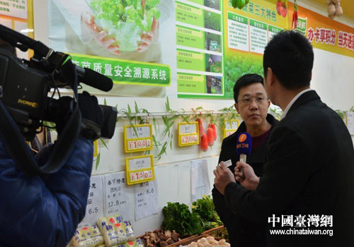 采訪組一行在成都市壹綠鮮食品有限公司可溯源安全食品專業連鎖店采訪。(圖片來源:成都市臺辦)