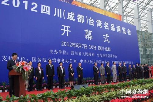 四川省長蔣巨峰宣布2012四川(成都)臺灣名品博覽會開幕。(圖片來源:四川省臺辦)