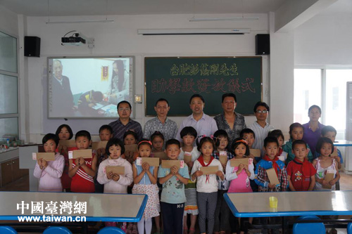 中國臺灣網6與14日廣元消息 日前,為深入推進實現“偉大中國夢、建設美麗繁榮和諧四川”主題教育活動,真情關愛下一代健康成長,在六一兒童節期間,廣元市臺辦主任任文剛帶隊深入劍閣縣龍源小學、旺蒼縣福慶小學、朝天區花石小學,送去臺灣中航偉聯集團董事長彭蔭剛資助的2萬元現金,發放到40名貧困學生手上,與孩子們共同慶祝六一兒童節,暢談理想,共敘感恩,快樂學習,健康成長。(中國臺灣網、廣元市臺辦聯合報道)