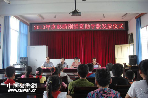 中國(guó)臺(tái)灣網(wǎng)7月11日自貢消息 日前,2013年度彭蔭剛捐資助學(xué)款發(fā)放儀式在四川省自貢市沿灘區(qū)九洪鄉(xiāng)中心小學(xué)校舉行。
