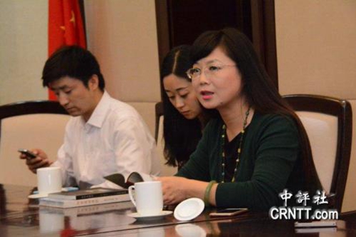 成都武侯祠博物館副館長(zhǎng)何紅英向中評(píng)社四川走親采訪團(tuán)簡(jiǎn)報(bào)博物館 的發(fā)展?fàn)I運(yùn)概況(中評(píng)社 趙家麟攝)