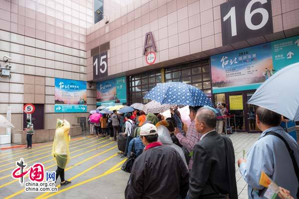 據了解,臺北旅展是目前兩岸合作舉辦的規模最大、影響力最強、品牌效應最突出的旅游展覽。本屆展會將持續到11月7日,展會總面積約5773平方米,設標準展位377個。其中,大陸展區展位數245個,展會面積3816平方米,共有28個省(區、市)、新疆生產建設兵團以及東航、南航臺灣分公司等31個單位、約600人參展。臺北旅展以突出現場交易為特色,各大旅行社均推出了針對此次臺北旅展的優惠價,臺北民眾更是一早便冒雨在展館外排隊,等待入場采買優惠線路產品。