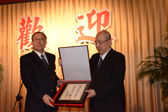 李鴻忠在圓山飯店與吳伯雄先生互贈(zèng)禮品