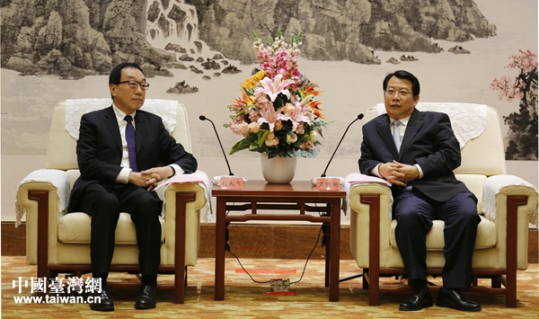 天津市委常委、市委統戰部部長冀國強會見中國國民黨中常委、臺灣中華經濟貿易合作促進會會長劉大貝一行。(圖片來源:天津市臺辦)