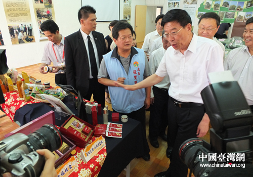 湖南省長徐守盛考察公館鄉(xiāng)農會農產品展示區(qū)。(湖南省臺辦 康衡 攝)