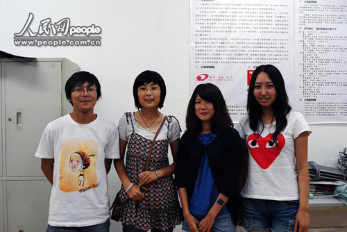 謝鈞(右二)與學生記者合影留念。圖片來源:人民網
