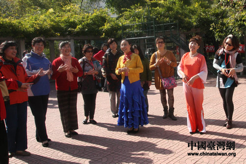 兩岸社區工作者即興進行了歌舞合演《愛在人間天堂》。(中國臺灣網 郭瑩瑩 攝)
