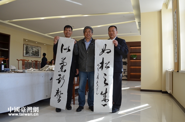 贈(zèng)送書法作品。(圖片來源:濱海新區(qū)臺(tái)辦)