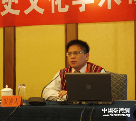 臺(tái)東大學(xué)南島文化研究所助理教授蔡志偉在研討會(huì)上發(fā)言(中國臺(tái)灣網(wǎng) 徐麗華 攝)