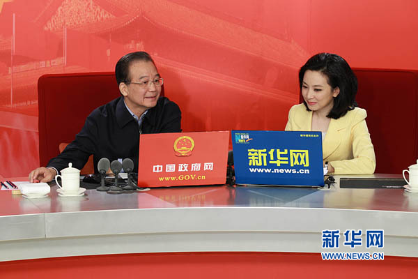 2月27日上午,中共中央政治局常委、國務院總理溫家寶接受中國政府網、新華網聯合專訪,與廣大網友在線交流。 新華社記者 龐興雷攝