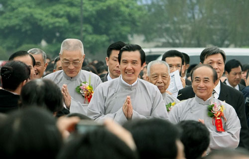 據(jù)“中央社”報道,馬英九、吳敦義、王金平、吳伯雄、呂秀蓮等人,6日上午出席在蔣介石紀(jì)念堂自由廣場舉行的祈福大典,馬英九表示,繼續(xù)努力改善兩岸關(guān)系,使兩岸民眾能在中華文化的智慧指引下,用和平方式解決雙方爭議。