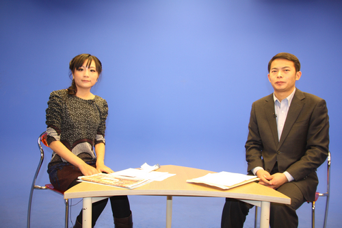 中國(guó)宋慶齡基金會(huì)聯(lián)絡(luò)部臺(tái)灣處李章程和中國(guó)臺(tái)灣網(wǎng)主持人董潔在節(jié)目錄制現(xiàn)場(chǎng)。(中國(guó)臺(tái)灣網(wǎng) 段富兵 攝)