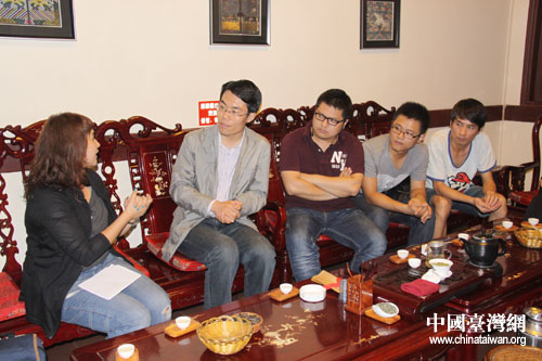 臺灣東森電視臺《生活接力棒》欄目組采訪貴陽春黔相聲工作室“80后”相聲演員。(貴陽市臺辦 胡珊珊 攝)