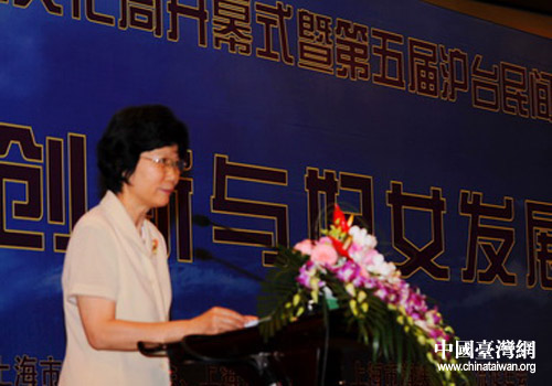論壇上,全國(guó)婦聯(lián)副主席陳秀榕致辭。(上海臺(tái)辦 常志康 攝)