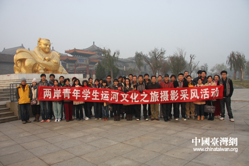 兩岸青年學生在運河畔的石家大院廣場合影。(中國臺灣網發 王亮攝)