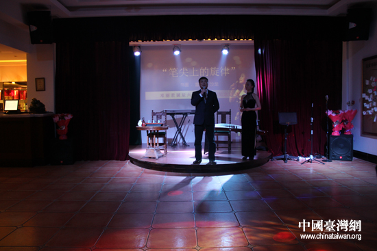 北京鄧麗君音樂主題餐廳總經理鄭榮斌在“筆尖上的旋律:書畫、音樂、沙龍——鄧麗君60周年冥誕紀念活動”上致辭。(中國臺灣網 何建峰 攝)