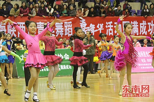 1日上午,第三屆海峽兩岸青少年國(guó)際標(biāo)準(zhǔn)舞公開賽暨第十三屆福建省國(guó)際標(biāo)準(zhǔn)舞錦標(biāo)賽在福州舉行。來自海峽兩岸的的7個(gè)代表團(tuán)30支參賽代表隊(duì)近1000名選手參與比賽,以舞會(huì)友。