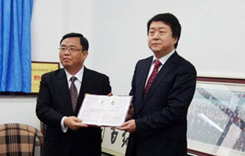 陳銳為郭震遠(yuǎn)教授(左)頒發(fā)聘書